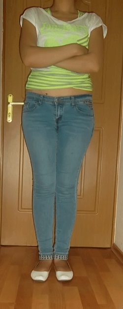 Стопы ещё до операции несколько завалены вовнутрь, особенно слева + плоскостопие. При исправлении О- образной деформации, завал стопы будет усиливаться, по этому с первых дней после операции, необходимо ношение обуви с косячками 0,6 - 0,7 см по внутренней поверхности на подошве.