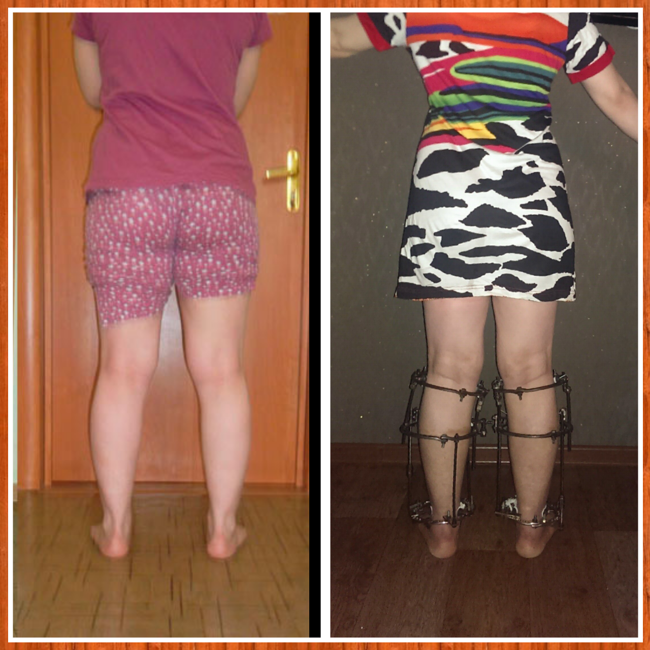 Просила всех, кто был у нас дома, фотографировать мои ноги – сзади, спереди, сбоку – как угодно, лишь бы посмотреть на них со стороны. Немного «заморачивалась», не буду скрывать. На левой ноге у меня мышечная масса развита больше, чем на правой. Но самое интересное, что сейчас, глядя на ежедневные снимки после снятия аппаратов, я заметила – ноги действительно с каждым днем становились другими, менялись в лучшую сторону и продолжают меняться. Два месяца прошло после снятия, постепенно все «головняки», связанные с ногами, отошли на задний план. Ножки свои НОВЫЕ я люблю с каждым днём всё больше и больше. И верю, как сказал Николай Николаевич, что окончательный результат будет виден через полгода после снятия. Что касается походки – на сегодняшний день она восстановилась, по-прежнему ноги не болят и не отекают. Лишь однажды, спустя полтора месяца, заныло правое колено, когда я впервые походила в обуви на каблуках(5 см). Переждала пару дней, походила в балетках, когда всё затихло, вновь вернулась к каблукам. И всё – больше я их не снимаю. Хожу быстро, иногда забываюсь, хочу побежать, но тут же себя останавливаю. Свободно сажусь на корточки, мою полы стоя на коленях, кручу педали на велотренажере, но сильно себя не напрягаю, как сказала Наташа – нагрузку нужно делать постепенно.