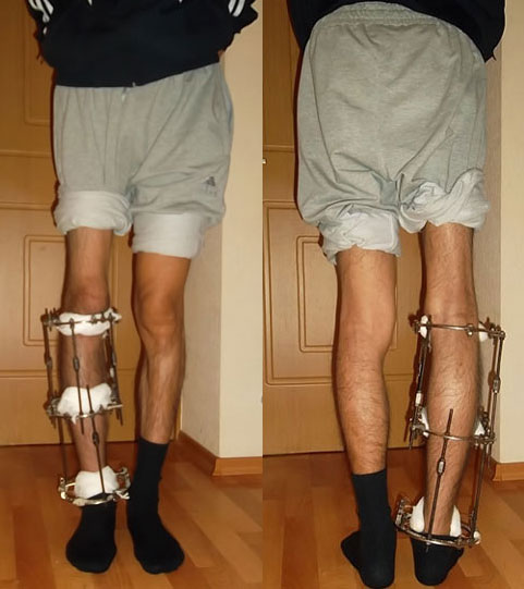 Ну особого дискомфорта с детства не испытывал, как все остальные участвовал на физ.культуре в школе и даже давал форы в стометровках. Многие и не замечали мои дистрофию. Рост остановился в 182см в 11 класс и с тех пор не менялось. Но последние пару лет начал замечать ослабевание короткой ноги, немного но себе заметно отошли мышцы. Но все же уставал, поясница болела после долгих прогулок на ногах, езды на автобусе в стоящей позе. В глубине мозга в уголке всегда лежала мысль удлинить ногу, быть как все, даже наверное можно это назвать мечтой! Но при одном слове "операция" я приходил в ужас и тем более на ногу которая все же передвигает меня на протяжении большее 2 десятков лет. В детстве слышал про какие то удлинения как месяцами лежишь на койке вытянутой ногой, через блок вывешивают гири-веса и постепенно их увеличивают. Правда ли такой метод имелся или нет, но мне щас он кажется каким то мифическим. Но вот прошли года и года 3 назад на недельку заболела поясница, после которого посетил травматолога и его ед. назначение было записаться на секцию плавания :) Между прочим 7лет спустя после окончания школы меня хотели забрать в армию с этими ногами (хотя у них военкомате имеется прямо такая статься что укор. ниж. конечности более чем 2.5см не годен к строевой службе). Поясница снова дала о себе знать с этой зимы. После двух месяцев не прекращающихся болей в поясе обратился в обл. больницу где после МРТ поясничного отдела позвоночника поставили диагноз протру?зия межпозвоночных дисков l4-l5, l5-s1 и остеохондроз. Примерно в тоже время у одной старушки медика в пенсии совершенно случайно узнал о Курганском институте ортопедии и травматологии, так как она была родом с того города. Она порекомендовала мне поехать туда. Тем временем как лечил поясницу разузнал об этом методе дистракционно-комписионном аппарате Илизарова. С инженерным высшим за спиной этот метод мне показался вполне понятным и я готов был лечь под нож. Но чужая страна, столько времени, как с работой поступить эти вопросы откладывали планы на попозже. В какой то вечер набрав на поиске в Интернете я нашел нашу клинику! В глазах загорелись искры и почему же те же травматологи или другие врачи не знают и не отправили меня туда это уже смешной вопрос.