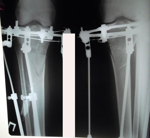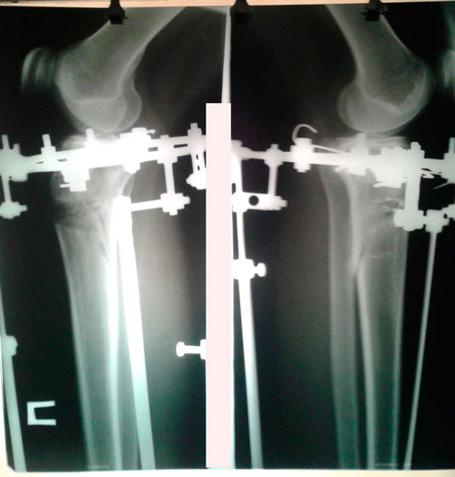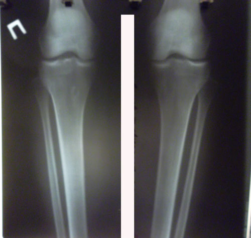 Левая голень более деформирована.