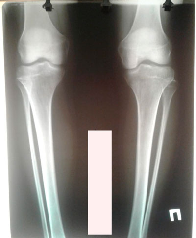 Правая голень заметно тоньше, ратированее и деформированее.